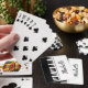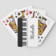 Musical playing cards, with a piano keyboard on a black and white background. Black script lettering can be personalized with your own information, a cute musical gift or a game you can enjoy!