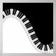 A curving black and white piano keyboard divides black from white in this whimsical graphic design that is sure to delight the musician.