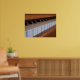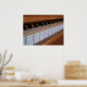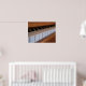 Poster with photo of piano keyboard showing white and black keys and wooden frame