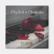 Artistic looking photo of an old piano focusing on the old yellowing keys with a faded red rose sitting on the keys and a few loose petals scattered about. This image has a somewhat melancholy and sentimental mood with a little bit of a nostalgic feel. Customize with the bride and grooms name and wedding date.