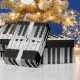 This wrapping paper features a very realistic-looking piano keyboard running from one end to the other three times. At regular intervals (on the keys for the notes of D and G-sharp), tiny red ladybugs provide a colorful, whimsical accent.