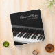 Customizable musical theme binder for classical scores or piano lessons and tunes with grand piano keys on black and white.