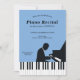 An invitation for a piano music recital. It comes with black & white piano keys and a silhouette of a man playing the piano, all on a blue background.