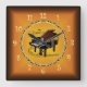 Piano On Musical Scroll Russet Orange Timepiece Square Wall Clock
