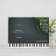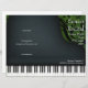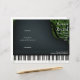 This is an elegant folded recital or concert program template featuring a stylized piano illustration on a background of clefs and music symbols.