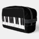 Exquisite black Dopp Kit bag with a piano keyboard design, and a space to add your own name to personalise. Delete the name if not required.