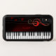 Modern black and white keyboard and red treble clef. Optional monogram