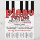 Bold, graphic, eye-catching customizable tear sheet flyer to advertise your piano tuning service. (piano lessons flyer also available. see below) Makes a very thoughtful, personal and practical gift for anyone you may know that is musically gifted and seeking to begin or grow their own piano tuning business. Features large red lettering and piano keys. Post this in your local deli, supermarket, library, park, gym etc and attract interest!