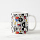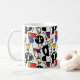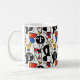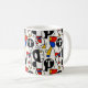 A collection of completely silly faces creates a fun and cute coffee mug. Reminiscent of Picasso's cubism style, these faces in black, white, red, blue and yellow are bright, bold, and delightful--a bit retro, and thoroughly modern!