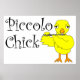 Piccolo Chick in curly text with a yellow chick playing a piccolo is a funny woodwind gift design to tickle the funny bone of musicians, music teachers and school students in concert and marching band.
