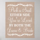 Pick a seat, either side, you're loved by both the groom and bride rustic chic faux shabby burlap linen jute wedding sign.