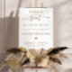 Chic white wedding unassigned seating foam board sign featuring "Pick a seat, either side, you are loved by both the groom and bride" in a mix of simple modern gold typography and an elegant gold script with swashes, a heart and your names and wedding date.