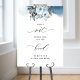 Welcome your guests to your ceremony and guide them to sit on either side with this elegant sign. Design with exquisite watercolor blue floral border, and a beautiful mixture of modern calligraphy and block typography. 8" x 10" is simply an example, you may choose from a variety of smaller and bigger sizes. "IMPORTANT NOTE: This sign is in premium poster paper style, easy to frame or glue/staple to inexpensive MDF or foam board for display. If you prefer this sign prepared for display already on a foam board, please follow these easy steps: on this sign product page, scroll up, until you see a section with images called "Transfer design to a product". Use the arrow on the images to look at all the options, until you reach the "Foam Boards" option. Click on it, and it will transfer the design into a foam board for you. Initially, sometimes it transfers the design into a very big foam board size, nevertheless, you can change the sign into the size you need right there on the product page and even see how it looks already in a stand. When you add this design to your shopping cart, it will tell you the back side is in black. Don't worry about it, as this only means that the back of the sign will be white. If you need help, please send me a message and I'll get back to you as soon as possible". Part of our "Modern Elegant Wedding and Events Signage" collection with various coordinating products available. Part of our "Rustic Blue Mountains Wedding" collection with a variety of coordinating products available. Visit the entire collection at:https://www.zazzle.com/collections/rustic_blue_mountains_wedding_and_event_collection-119893780903977429 Dimensions of sign in demo photo with stand: 20" x 28"