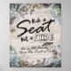 Pick A Seat Not A Side Wedding Sign Poster - Elegant Script, Vintage Watercolor Botanical Floral on Rustic Wood Background.
