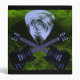 A futuristic scene of a guitar pick with ripple effect hovering above electric guitars that form a cross formation. Perfect for that electric guitar god!