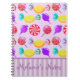 Bright and colorful candy and lollipop patterned notebook with optional personalisation.