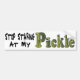 Funny bumper sticker says Stop Staring at My Pickle. Makes a Great Gift for the pickle lover in your life.