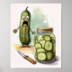 Pickle Funny kitchen wall art - sliced pickled cucumber scared from the knife great addition to any kitchen as housewarming gift, funny vegan poster, wall art decor, watercolor.