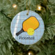 Pickleball Design Ornament with customizable text on both sides. Pickleball is a racket/paddle sport that was created by combining elements of several other racket sports. Two or four players use solid paddles to hit a perforated polymer ball over a net.