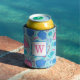 Pickleball Blue Preppy Monogram Can Cooler