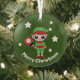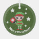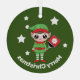 Cute Pickleball Christmas Elf, Glass Ornament with customizable texts. Great to send to your pickleball partner this Christmas.