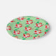 Fun pickleball Christmas holiday party plates featuring Mrs. Claus pickleball player pattern.