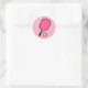 Unique pickleball envelope seals, gift stickers or party favor labels featuring hot pink paddle and yellow ball.