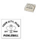 The Pickleball Club Team-Paddles & Ball Personalized rubber stamp is a product that caters to pickleball enthusiasts who want to add a personalized touch to their equipment. This rubber stamp allows users to imprint their club team's name, logo, or any other design onto their paddles and balls, giving them a unique and customized look. The stamp is made of high-quality rubber, ensuring durability and long-lasting use. With this product, pickleball players can showcase their team spirit and stand out on the court.