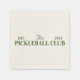 Elevate your Pickleball Club Themed Party with these vibrant cocktail napkins designed to capture the energetic spirit of the game. The playful backdrop showcases a subtle pickleball court layout, while lively illustrations of paddles and balls infuse the design with a sporty charm. In classic pickleball colors of green and yellow, these napkins not only serve a functional purpose but also contribute to the lively atmosphere, creating a cohesive and engaging visual experience for your guests. With catchy phrases like "Smash it!" and "Pickleball Pro," along with essential event details seamlessly integrated, these napkins strike the perfect balance between fun and informative, ensuring your celebration is both stylish and memorable. Crafted from high-quality material and featuring your club's name or logo, they become a personalized keepsake for attendees, adding an exclusive touch to the party ambiance.