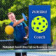 Cool Pickleball Coach business cards. Blue and yellow design. Add your details on back.