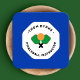 Simple crossed pickleball rackets emblem logo on aqua blue background..
