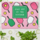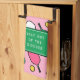 Creative pickleball gift idea featuring hot pink and cool green paddles pattern and quote for pickleball player to place in the kitchen or take to the court.
