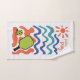 Dinkmaster Dilly! This playful and energetic caption crowns a vibrant pickleball sports towel that celebrates skill, fun, and personality on the court. Featuring a green paddle with a black handle and a matching green pickleball, the design pops against a bold red and orange background that suggests a sunlit court. Above the action, wavy blue and teal lines evoke water, while a radiant orange sun beams from the corner, adding a summery, resort-ready vibe. Perfect for gifting to your favorite coach, showing off at a pickleball club, or packing for a vacation tournament at a tourist resort. Whether you're a player, fan, or team captain, this towel brings humor and flair to any party or holiday. Pickleball beach towel design can be transferred to other similar pickleball gifts and products.