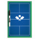 The board is very high quality and heavy! We wanted to put it on our fridge, but there was no way to attach it with magnets. We tried bag clips with magnets, but the board was still heavy after using 4. We purchased a roll of magnetic tape. Adhesive on one side, magnet on the other. Works great. Other problem is that it comes with a black dry erase marker. Why not an option to choose a white one? Had to purchase a chalk dry erase marker from Amazon, but after all that, board works great! Wife loves it. Printing is beautiful. We went with stock except changing to our last name. Looks great!