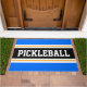 PICKLEBALL Fun Bright Blue Black Yellow Stripes Doormat