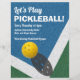 Pickleball Flyer with "Let's Play Pickleball" and your customized event information on a pickleball court background. Edit each text line to your own info.