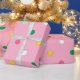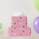 Creative pickleball gift wrap featuring hot pink and cool green polka dots and yellow balls pattern on a pink background for your favorite pickleball player.