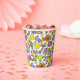 White Paper Cups with Groovy, retro 90s style pickleball pattern with yellow pickleballs and white background. Great addition to your pickleball party or birthday