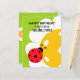 Sweet green Happy Birthday postcard for Pickleball player with cute pickleball ladybug and daisy