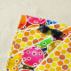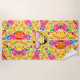 Pickleball summer vacation beach towel. Pickleball is a court sport for any age and athletic ability. Between the dinking, banging and long rallies lifelong friendships are forged. Super colorful graphic with pickleball balls, yellow, orange honeycombs, hexagon shapes, and a big yellow pickleball wearing sunglasses and smiling.