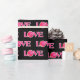 Pickleball wrapping paper. Hot Pink pickleball is the O in LOVE on this dark t-shirt. Show your love for the game of pickleball on and off the court. Good for a Valentine's Day tournament, Pickleball Singles event or any time you want to share the love of the game with your fellow pickleballers.