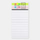 Wow. I just received my first order of these notepads and I am super impressed with the very high quality of the printing and materials, the very substantial overall size and weight and the fact that the magnet on the back is huge! Very nice product... Will order more styles right away! Perfect clarity and bright, true colors on my cartoon art.