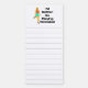 Wow. I just received my first order of these notepads and I am super impressed with the very high quality of the printing and materials, the very substantial overall size and weight and the fact that the magnet on the back is huge! Very nice product... Will order more styles right away! Perfect clarity and bright, true colors on my cartoon art.