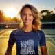 The artwork features a bold illustration of a pickleball paddle and ball, with dynamic lines and vibrant colors highlighting the excitement of the game. Surrounding the central image are subtle design elements, such as court lines and net patterns, adding depth and context. Perfect for the avid pickleball player, this t-shirt embodies the competitive spirit and finesse required to master the dink shot, making it a standout choice on and off the court.