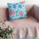 Chic and colorful pillow for someone who loves pickleball. The design has blue pickle ball paddles and balls with some paddles in a pink drawstring bag. The pickleball design can be found on other items in my store, PageCreativeDesigns.