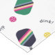 This vibrant tablecloth features a vibrant, fun pattern with striped Pickleball paddles, balls and the word "dink!." In shades of blue, green, pink and yellow. Part of a collection from Parcel Studios.