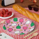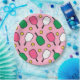 Creative pickleball party or event plates featuring hot pink and cool green paddles and yellow balls pattern on pink background for your favorite pickleball players.