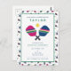 Celebrate your pickleball player or fan with these fun and vibrant party invitations featuring striped blue, green and pink pickleball paddles. Text is customizable. Birthday age is also customizable. Part of a collection from Parcel Studios.