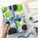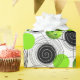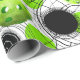 A cute design depicting a pattern of neon green pickleballs surrounded by black and white spiralling circles.