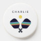 Celebrate your pickleball player or fan with this fun and vibrant personalized name PopSocket featuring striped blue, green and yellow pickleball paddles. Text is customizable. Makes a great gift for pickleball players. Part of a collection from Parcel Studios.